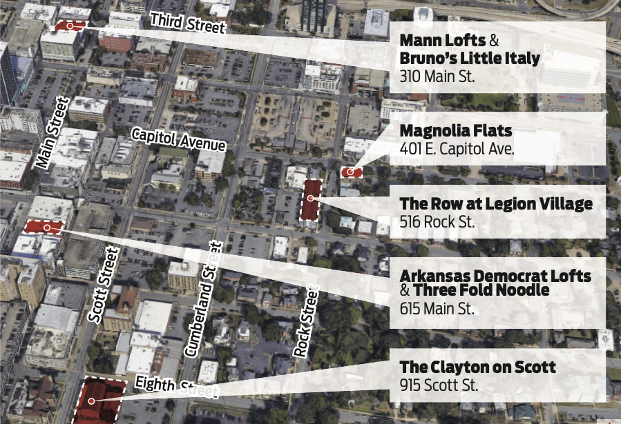 Five apartment projects in downtown Little Rock sold in a series of transactions totaling more than $18.7 million.