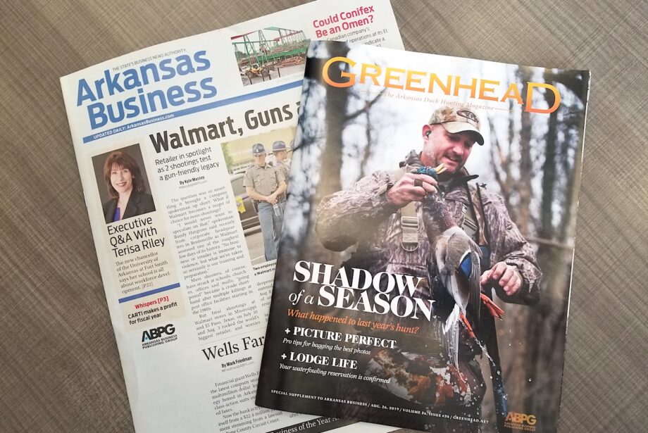 Gold awards also went to the Morning Roundup, ArkansasBusiness.com‘s daily e-newsletter of business news from around the web, and Greenhead, Arkansas Business Publishing Group’s annual magazine for and about duck hunters. Arkansas Business received a silver award for bylined commentary.