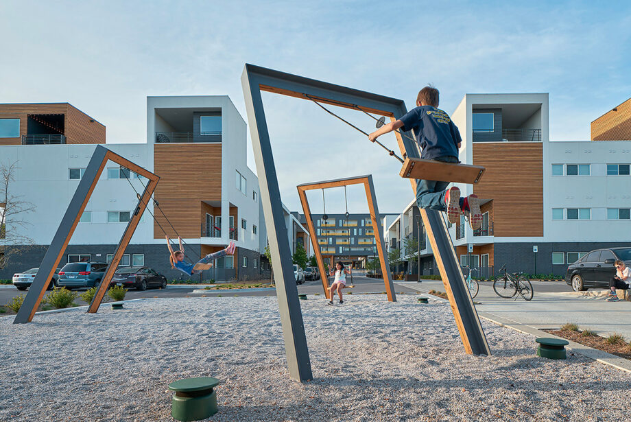 The promenade and plaza are bolstered by smaller-scale amenities such as community gardens, terraces, the pool and a roof deck. A handful of units have lofts that offer additional flexible spaces that afford views and access to private rooftop patios. These lofts become signature formal elements, establishing rhythm and accentuating proportions along the site.