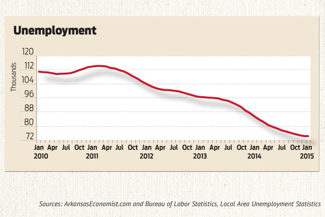 As the unemployment rate in Arkansas is falling the size of the labor force is increasing, as these charts by Michael Pakko, the state’s economic forecaster, show.