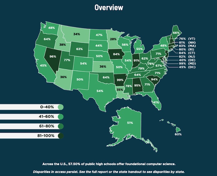 The 2023 State of Computer Science report, conducted by a consortium of organizations, including Code.org, ranks Arkansas first in the nation for the percentage of schools in the state offering foundational computer science classes.