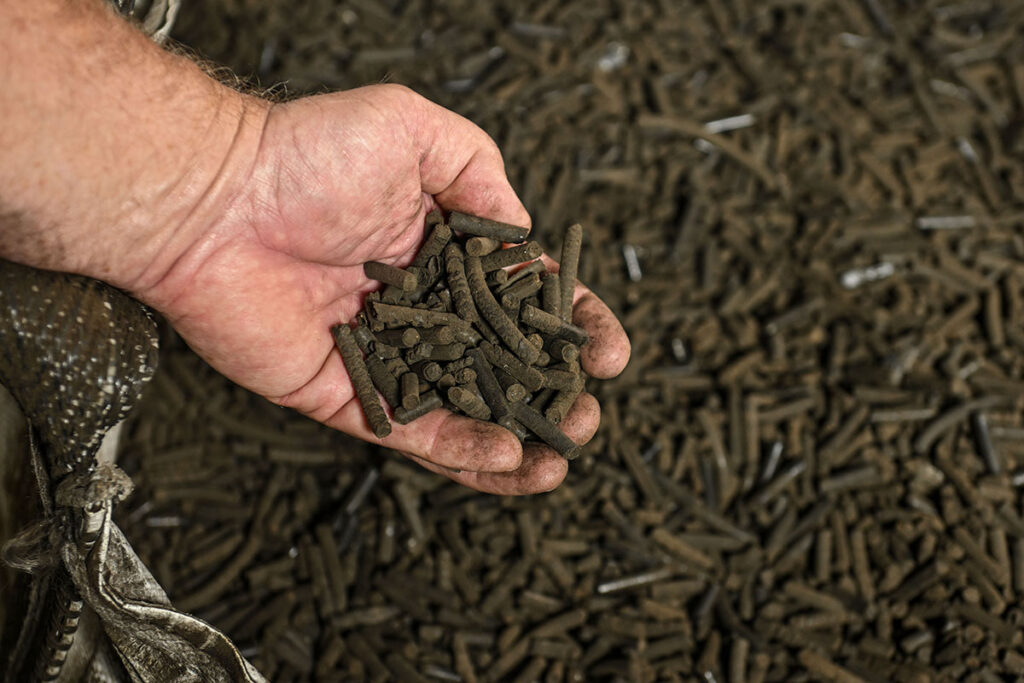 After composting, the fertilizer is also pelletized. Pelletizing heats up the mix one more time as a final check, Ims said.