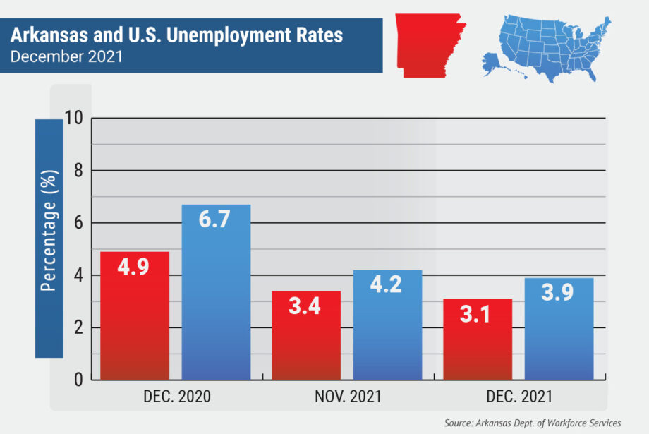 BLS Program Operations Manager Susan Price in a news release said December’s rate is a new record low for the state. She also said, while employment increased for a second month, there are slightly fewer employed Arkansans compared to December 2020.