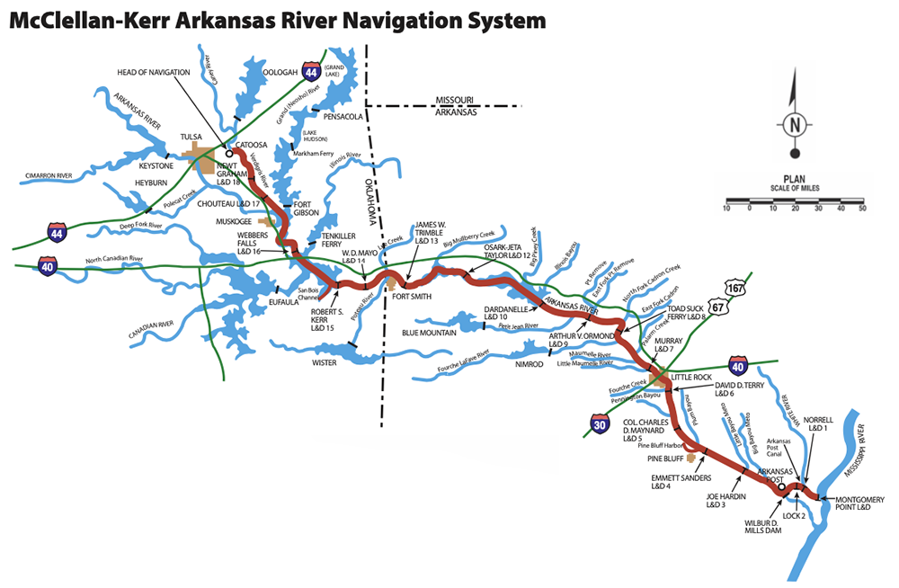 The U.S. Army Corps of Engineers, in the Little Rock and Tulsa districts, is beginning the planning and design work to deepen the shipping channel to 12 feet on the 445-mile McClellan-Kerr Arkansas River Navigation System (MKARNS). The system runs from the Tulsa Port of Catoosa southeast through Arkansas to the Mississippi River near Helena.