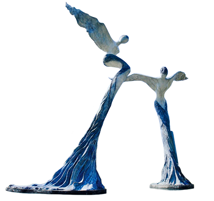 Two winged feminine figures, the tallest standing at 40 feet and bearing wings more than 25 feet long, will crown a plaza reflection pool in front of the atrium entrance.