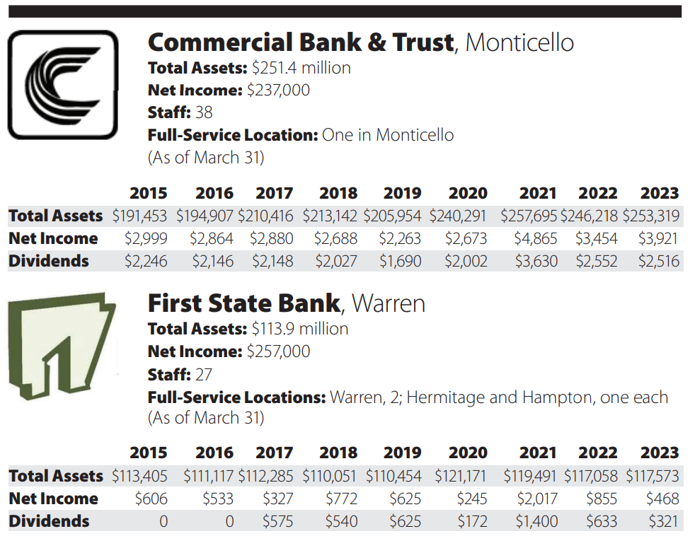 The pending merger of Monticello’s Commercial Bank & Trust and Warren’s First State Bank will create a financial institution that will rank No. 41 among Arkansas-based banks based on total assets.