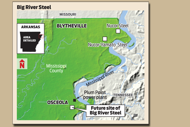 Gov. Mike Beebe, AEDC and steel executive John Correnti announced the project on Jan. 29. Correnti said the $1.1 billion steel plant will employ 525 people at an average salary of $75,000 per year. Initially, the plant will produce steel for the oil and gas industry, but Correnti plans a second phase that will make a high-grade steel for use in the automotive and electrical industries.