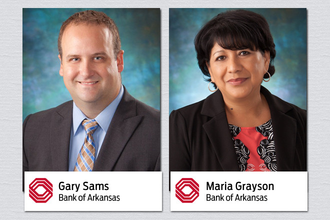 Gary Sams has been named vice president and retail manager for BOKF in Fayetteville, and Maria Grayson has been named assistant vice president and branch manager in Bentonville. BOKF is a Tulsa bank that does business in Arkansas under the name Bank of Arkansas. Sams was previously a market manager for Associate Bank of Green Bay, Wisconsin, and has worked for Wells Fargo and Arvest Bank. At Bank of Arkansas, he will direct retail branch strategy for the bank’s consumer division.