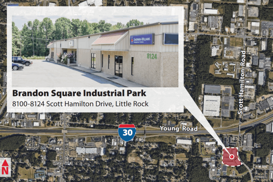 Pond Hamilton LLC, an affiliate of Atlanta’s Epic Partners, acquired the six-building Brandon Square Industrial Park at 8100-8124 Scott Hamilton Drive from Little Rock Flex LLC, an affiliate of Chicago’s JDI Realty.