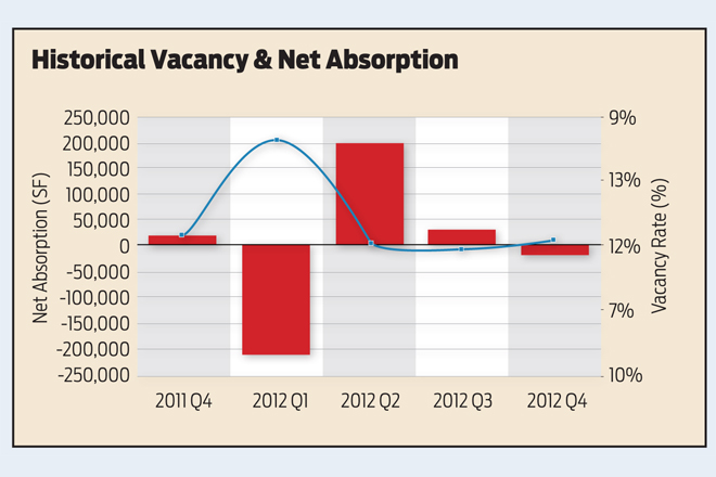 The fourth-quarter office market in central Arkansas has remained relatively flat with a vacancy rate during the last five quarters of 12 percent.