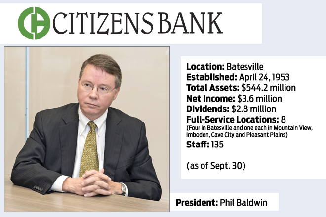 Citizens Bank of Batesville officially has declared itself a buyer in the grow-or-go banking sweepstakes. That pronouncement was given public voice with the hiring of Phil Baldwin as president of the $544 million-asset lender and CEO-to-be in 2015.