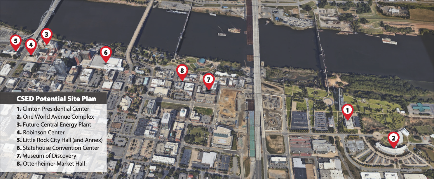 Ultimately, ENFRA and the foundation hope that the district will run along West Markham Street and the Broadway corridor, where City Hall and its annex stand, to Robinson Center, the Statehouse Convention Center, the River Market, the Arkansas Museum of Discovery and east to the Clinton Center and the former Heifer campus.
