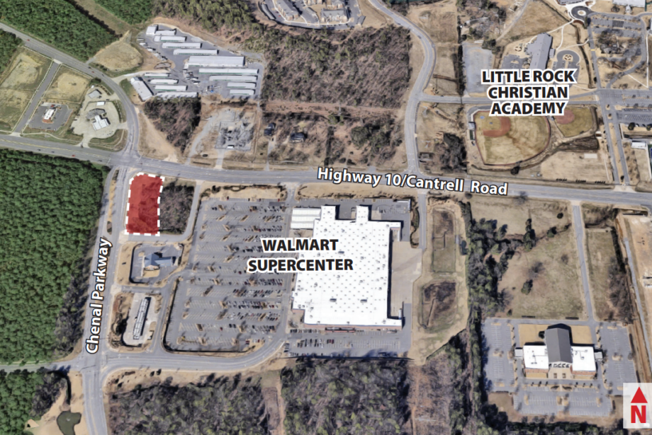 Foxden Capital LLC, led by Todd and Amanda Denton, purchased the parcel at the southeast corner of Chenal Parkway and Highway 10.