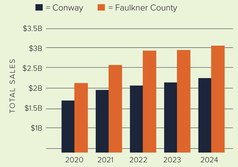 (2024 sales estimates: Conway, $2.25 billion; Faulkner County, $3.08 billion)