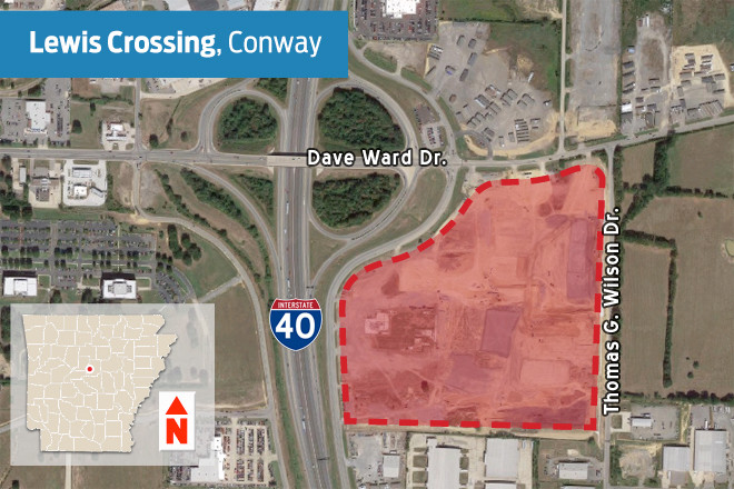 One of the big puzzle pieces in Conway’s retail development picture is almost complete: Lewis Crossing, the 441,871-SF, $65 million shopping center at the southeast corner of Interstate 40 and Dave Ward Drive.