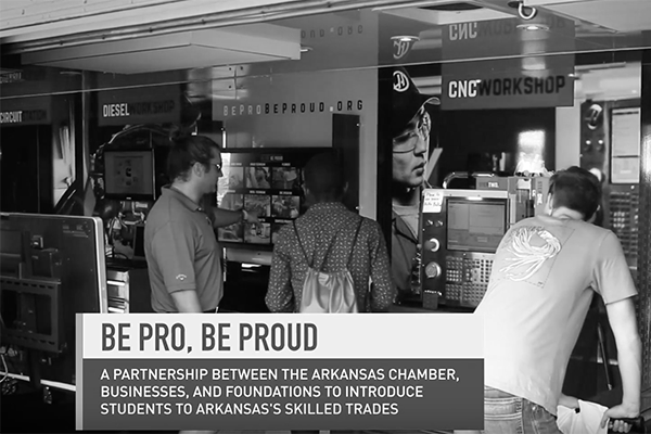Most Arkansas students know that it takes years of college to become a doctor or lawyer and the financial reward those careers provide. Too few students know about the training path it takes to become a computer numerically controlled (CNC) operator, a tool and die maker or a plumber. They don’t know these careers demand high skills and provide family-supporting wages. Be Pro, Be Proud identifies in-demand, high-skill jobs, provides interactive experiences for students like George and connects them to training at community colleges. Be Pro, Be Proud also helps employers coordinate with colleges to co-create the training and certifications they need employees to have.