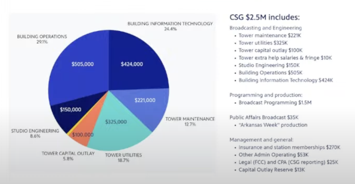That includes a little more than $2.5 million in community service grants from the CPB. The organization does have around $1 million in carryover CPB grants from last year.