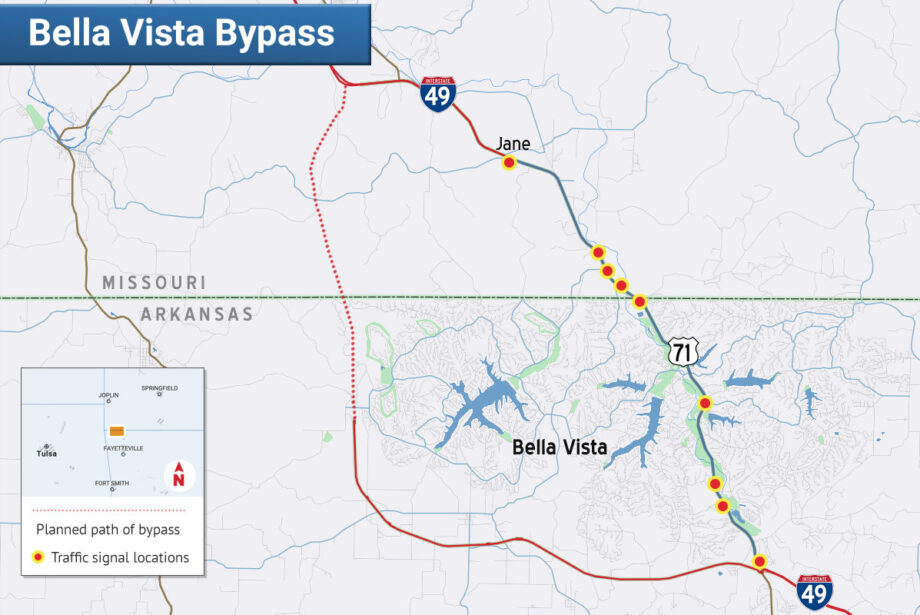 The bypass is a 19-mile stretch of Interstate 49 that will sweep around Bella Vista to the west and reconnect in southern Missouri. It is the only uncompleted stretch of Interstate 49 between Kansas City and Fort Smith.