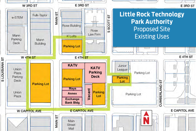 In 2011, Little Rock voters approved a sales tax measure that included $22 million for the creation of the park. This week, ARK Commercial and Investment Real Estate recommended to the tech park board five properties along Main and Scott streets in downtown Little Rock, including the KATV building at Main and Fourth, for development of the park.