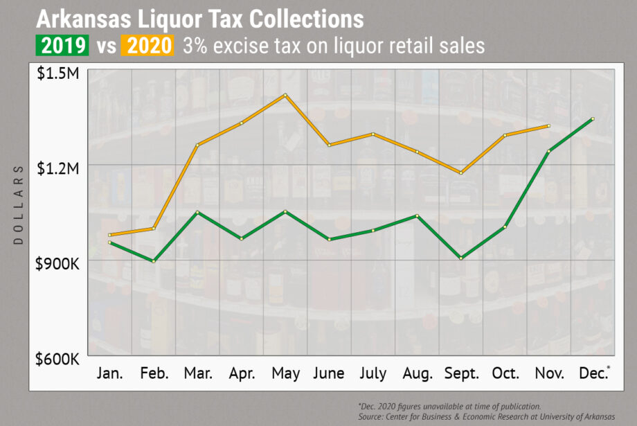 Well, we’re sharing the data so you, too, can see that the state’s 3% excise tax on liquor sales brought in $13.6 million through November 2020, the latest figures available, surpassing by $1.2 million sales for all of 2019.