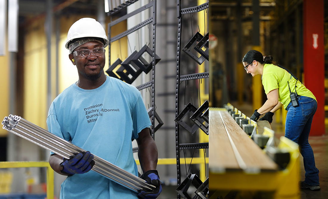 Workers at the Trex plant in Winchester, Virginia, above. After some delays, Trex expects its facility at the Port of Little Rock to start operating in two years. When the Little Rock project was announced in October 2021, plans called for production to begin in 2024.