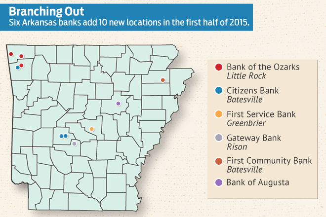 Six lenders made moves to grow their Arkansas branch network during the first half of 2015.