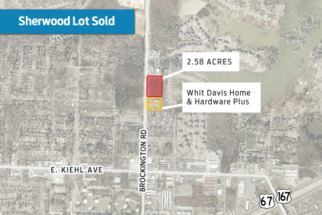 A 2.58-acre lot next to the Whit Davis Home & Hardware Plus store in Sherwood has sold for $425,000 to a company led by Whit Davis President and Co-Owner Terry Toney.