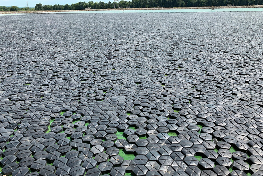 Tiles—hundreds of thousands of 22-millimeter hexagonal pieces of high-density polyethylene—are designed to fill with water and float at the top of 9 acres of lagoons that feed into the wastewater management facility, controlling algae growth by blocking sunlight, the energy source for algae.