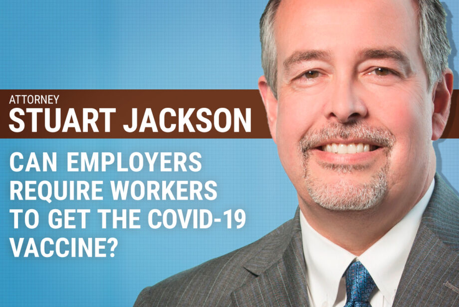In this video, Arkansas Business’ Lance Turner talks to Stuart Jackson, a partner on the Labor & Employment Team at the Wright Lindsey Jennings law firm in Little Rock, about whether employers can require employees to get the COVID-19 vaccine.