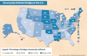 Of the 12,853 bridges in the state, 845, or 7 percent, are classified as structurally deficient, meaning that one or more of the key bridge elements — such as the deck, superstructure or substructure — are considered to be in “poor” or worse condition. read more >