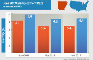 Arkansas' unemployment rate held steady at 3.4 percent, the same record low set in May, but the rate is also down seven-tenths of a percentage point from June 2016. read more >