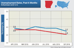 Arkansas' unemployment rate in October rose to 3.6 percent from 3.5 percent in September, but it was still lower than the 4 percent reported for October 2016. read more >