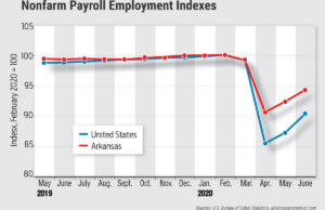 Nonfarm payroll employment in Arkansas rose by 23,700 in June, an increase of 2%, while the national total rose by 3.6%. read more >
