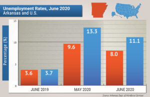 Arkansas' seasonally adjusted unemployment rate declined to 8% in June from 9.6% in May, the state Department of Workforce Services reported Friday. read more >
