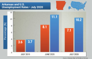 Arkansas' seasonally adjusted unemployment rate declined to 7.1% in July from 8.1% in June, the state Department of Workforce Services reported Friday. read more >