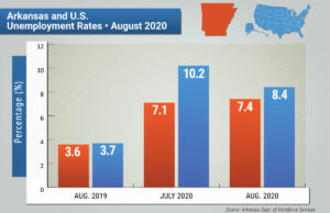Arkansas' seasonally adjusted unemployment rate increased to 7.4% in August from 7.1% in July, the state Department of Workforce Services reported Friday. read more >