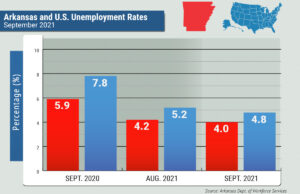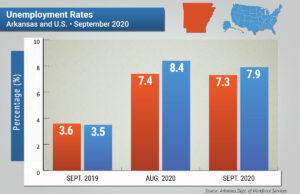 Arkansas' seasonally adjusted unemployment rate declined to 7.3% in September from 7.4% in August, the state Department of Workforce Services reported Friday. read more >