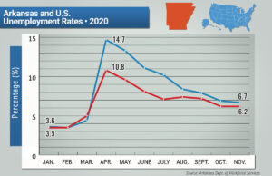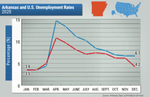 Arkansas' seasonally adjusted unemployment rate was 4.2% in December, down from 6.3% in November, the state Department of Workforce Services reported Tuesday. read more >