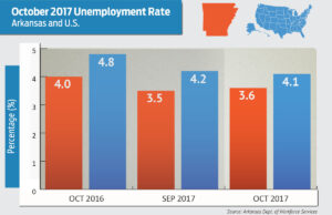 Arkansas' unemployment rate in October rose to 3.6 percent from 3.5 percent in September, but it was still lower than the 4 percent reported for October 2016. read more >