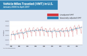 Vehicle miles traveled in the United States exceeded 3.2 trillion miles in 2016, a record, according to the Federal Highway Administration. It was the fifth consecutive year of increased mileage on public roads. read more >