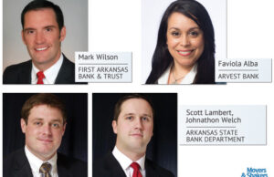 Mark Wilson, who has been with First Arkansas Bank & Trust of Jacksonville since 2001, has been promoted to senior vice president and chief credit officer. Since he joined the bank as a loan officer, Wilson has been involved in supervising online banking, debit cards and the Customer Service Call Center. read more >