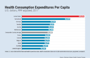The United States spends more per person on health care than similarly wealthy countries: $10,224 per person in 2017. That was 28% higher than Switzerland, the next highest spender per capita. read more >