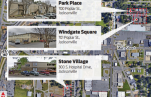 Parkplace Project LLC of Brooklyn acquired the 92-unit Park Place project at 621 and 700 Poplar St., the 56-unit Windgate Square project at 701 Poplar St., the 46-unit Stone Village project at 300 S. Hospital Drive and the eight-unit Southview project at 1201 South Road. read more >