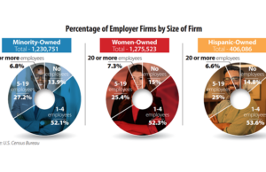 Of the about 5.9 million employer businesses in the United States in 2021, 1.2 million, or 21%, were minority-owned; 406,086, or 6.9%, were Hispanic-owned; and 1.3 million, or 22%, were […] read more >