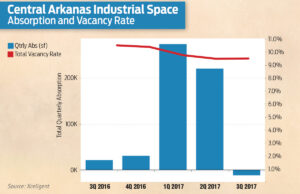 The total vacancy rate for industrial space in the central Arkansas real estate market fell to 9.6 percent in third-quarter 2017, compared with 10.6 percent in third-quarter 2016. read more >