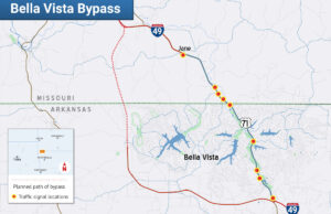 The bypass is a 19-mile stretch of Interstate 49 that will sweep around Bella Vista to the west and reconnect in southern Missouri. It is the only uncompleted stretch of Interstate 49 between Kansas City and Fort Smith. read more >