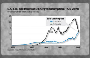 In 2019, renewable energy consumption in the United States surpassed coal for the first time in more than 130 years, according to the U.S. Energy Information Administration. read more >